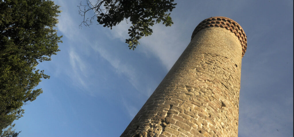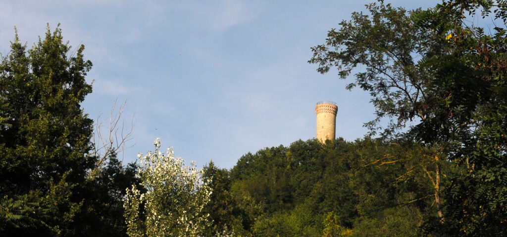 L’«esile torre» cantata dal Carducci e visibile a grande distanza, è stata fatta erigere dai marchesi cebani. L’imponente fusto cilindrico, alto metri 32 (o 33) in cinque piani fuori terra e con una circonferenza di 32 metri, è realizzato in pietra da taglio. È sormontato da un terrazzo di sommità, il cui aggetto è determinato da tre ordini di archetti pensili, alternati da cornici a dente di sega.