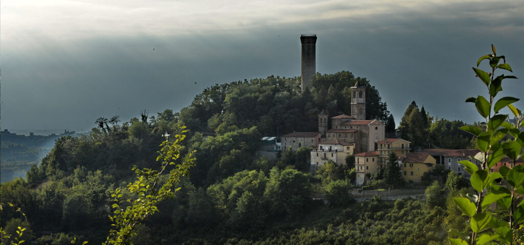 Così Andreina Griseri (Itinerario di una provincia, 1974) segnala l’elevata torre di Castellino Tanaro: «… in val Tanaro si stacca la eccezionale torre di Castellino (per un’altezza di 52 metri [o 32?] e una circonferenza di 30 [o 32?]), già parte di un complesso che dominava la valle. Databile al sec. XIII, è da confrontarsi con la torre di Cortemilia e con altra, pure del Duecento, a Roccaverano …». La storica costruzione era il mastio dello scomparso complesso castellano, dapprima elencato solo quale bastia («bastitam») assegnata al marchese Ugo di Clavesana nell’incerto atto della divisione ereditaria tra i figli del marchese aleramico Bonifacio del Vasto, forse rogato nel 1142, poi passata quale castrum ai marchesi di Ceva ben prima del 1216. Interessante è un documento del 1387 nel quale il marchese Giovanni di Ceva ridefinisce gli accordi con la comunità locale, prevedendo pure che gli uomini di Castellino debbano provvedere alla custodia della porta del ricetto superiore del castello, inoltre che essi debbano riparare i danni ed aiutare il marchese «ad castellandum, riparandum et fortificandum castrum et turrim Castellini …».