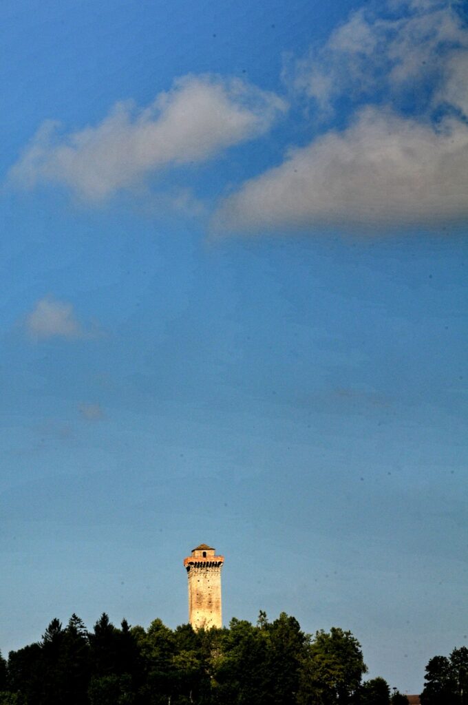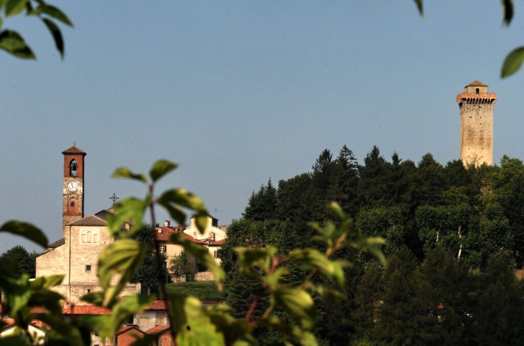 Nella parte più elevata del concentrico di Murazzano, in una piacevole area di verde pubblico, sorge l’alta torre maestra, un tempo compresa in un munito castello. Il maniero è attestato nel 1222 («actum in castro Mulazzani»), ma già compare nell’incerto documento della divisione ereditaria tra i figli del marchese aleramico Bonifacio del Vasto, forse rogato nel 1142. Il medievale castello scomparso è appartenuto ad un ramo dei marchesi di Saluzzo, dal 1463 e poi definitivamente dal 1487 ai duchi di Savoia.